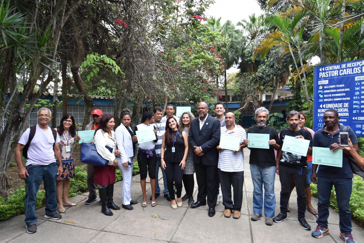 “O Projeto Vaga Social, criado pelo prefeito Marcelo Crivella, está sendo finalizado e em breve teremos boas notícias” — afirma aos formandos o secretário da SMASDH, João Mendes de Jesus, durante a festa de formatura. Do total de vagas do programa, 5% serão destinadas aos acolhidos nas unidades sociais da Secretaria. João Mendes ressaltou ainda o momento difícil que o País está passando e, segundo ele, a qualificação profissional significa um apoio importante para quem está procurando emprego.