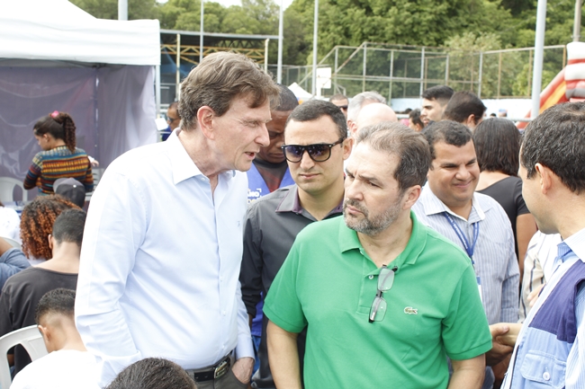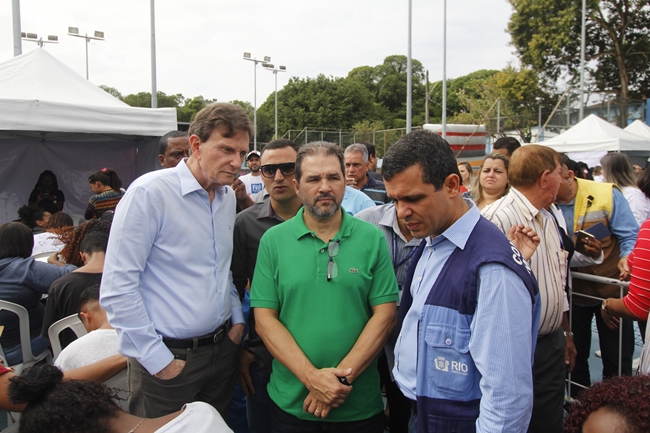 O prefeito Marcelo Crivella compareceu ao evento “Rio em Ação Social”, realizado neste último sábado (12), na Vila Olímpica Oscar Schmidt, em Santa Cruz, na Zona Oeste. Acompanhado do senador Eduardo Lopes, o prefeito visitou as tendas que ofereceram serviços de utilidade pública. Quem compareceu teve acesso aos serviços de emissão de identidade (1ª e 2ª vias), CPF, agendamento para expedição de carteira de trabalho, seguro-desemprego, inscrição no Cadastro Único, cadastramento no programa Minha Casa Minha Vida, encaminhamento para entrevistas de emprego, entre outros.